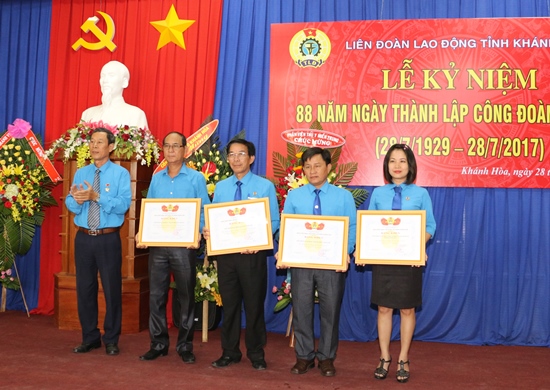 Năm 2017, Tổng Liên đoàn lấy chủ đề trong hoạt động là “Năm vì lợi ích đoàn viên CĐ”, đây cũng là năm cuối thực hiện các chỉ tiêu Nghị quyết Đại hội IX CĐ Khánh Hòa, hưởng ứng phong trào thi đua yêu nước do Tổng Liên đoàn và UBND tỉnh phát động, chào mừng các sự kiện trọng đại của Đất nước và tỉnh Khánh Hòa, chào mừng Đại hội CĐ các cấp, hướng đến Đại hội X Công đoàn Khánh Hòa, Đại hội XII Công đoàn Việt Nam, lập thành tích chào mừng Kỷ niệm 88 năm Ngày thành lập CĐVN (28/7/1929 – 28/7/2017), BCH LĐLĐ tỉnh đã phát động thi đua, triển khai đồng thời nhiều hoạt động trong các cấp CĐ, hưởng ứng phát động thi đua, các cấp CĐ cùng toàn thể cán bộ đoàn viên, CNVCLĐ đã nỗ lực thi đua trên mọi lĩnh vực công tác lập nhiều thành tích nổi bật sau: