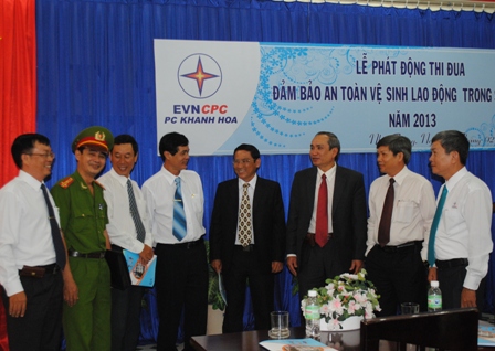 Sáng ngày 18.2, tức ngày mùng 9 Tết, Công ty cổ phần Điện lực Khánh Hòa đã tổ chức Lễ phát động thi đua đảm bảo an toàn vệ sinh lao động trong sản xuất năm 2013. UVBCH Tổng LĐLĐ VN, Tỉnh ủy viên, Chủ tịch Liên đoàn Lao động tỉnh – Nguyễn Hòa cùng các đồng chí lãnh đạo Sở Lao động, Thương binh – Xã hội, Sở Công thương, Công an tỉnh Khánh Hòa đã đến dự.