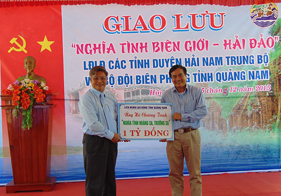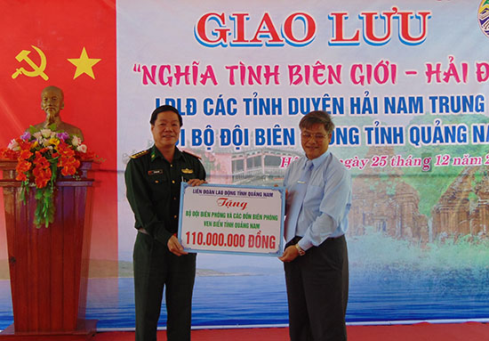 Cùng ngày Cụm thi đua Liên đoàn Lao động các tỉnh duyên hải Nam Trung bộ đã giao lưu với Bộ đội Biên phòng tỉnh Quang Nam với chủ đề "Nghĩa tình biên giới - Hải đảo". Tại buổi giao lưu LĐLĐ tỉnh Quảng Nam đã trao 1 tỷ đồng ủng hộ Chương trình "Nghĩa tình Hoàng Sa - Trường Sa" do Tổng LĐLĐVN phát động và 110 triệu đồng ủng hộ cho Bộ đội Biên phòng tỉnh Quảng Nam.