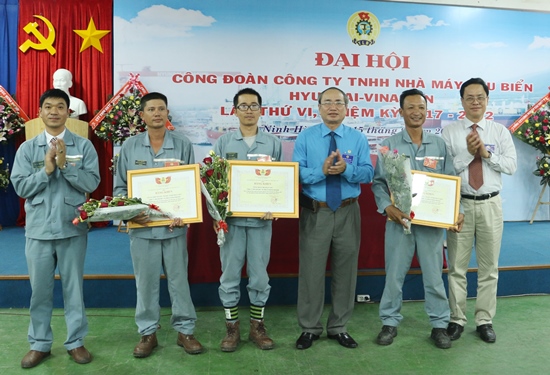 trao bằng khen cho tập thể CĐ Công ty TNHH Nhà máy tàu biển Hyundai Vinashin.