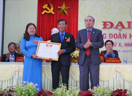 Đ/c Nguyễn Hòa - Chủ tịch LĐLĐ tỉnh tặng bằng khen cho BCH nhiệm kỳ 2013-2018