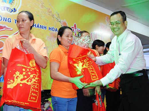 Tối ngày 2-2, tại Khu Công nghiệp Suối Dầu huyện Cam Lâm, Liên đoàn Lao động tỉnh Khánh Hòa tổ chức chương trình Tết sum vầy 2016 chung vui cùng với hàng trăm CNLĐ có hoàn cảnh khó khăn, những anh chị em CN không có điều kiện về quê sum họp với gia đình… Trên 220 phần quà đã trao cho CNLĐ và nhắn tin ủng hộ xây dựng Khu tưởng niệm Nghĩa sĩ Hoàng Sa.