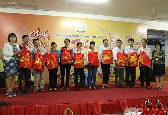 Được biết, trong dịp Tết Bính Thân năm nay, hầu hết các CĐCS đều có quà tặng cho đoàn viên và NLĐ trích chi từ nguồn kinh phí của Công đoàn và hổ trợ của lãnh đạo đơn vị. Riêng LĐLĐ tỉnh đã trao tặng cho CNLĐ khó khăn về nhà ở 11 Nhà Mái ấm Công đoàn (trị giá trên 400 triệu đồng); các cấp Công đoàn trong tỉnh đã vận được hơn 1700 phần quà (từ 300 đến 500 ngàn đồng), với giá trị trên 500 triệu đồng; và 300 chiếc điện thoại của Công ty Viẹtel tài trợ( trị giá trên 200 triệu đồng) để gửi tặng đến CNLĐ.