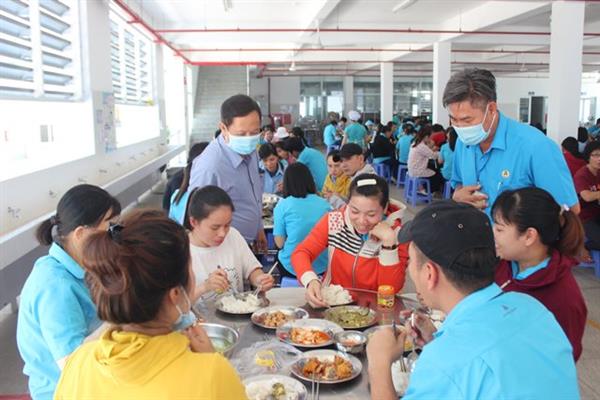 Cán bộ công đoàn nắm bắt, giám sát bữa ăn ca của công nhân tại Khu công nghiệp Suối Dầu