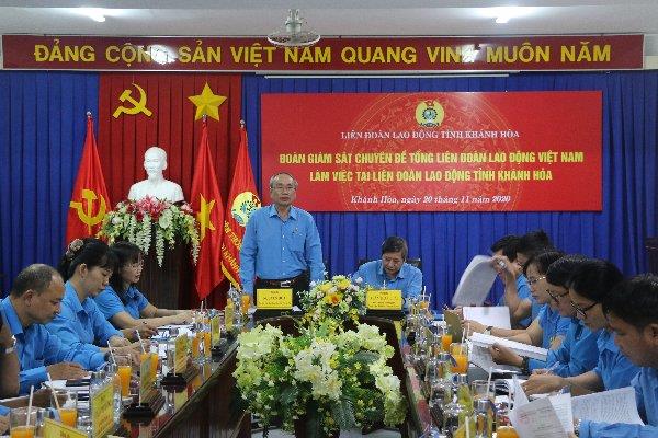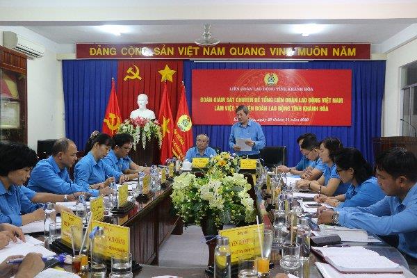 Ngày 20/11/2020, Đoàn giám sát chuyên đề Tổng LĐLĐ Việt Nam do đ/c Trần Thanh Hải – Phó Chủ tịch Thường trực làm trưởng đoàn đã có buổi làm việc với LĐLĐ tỉnh Khánh Hòa.