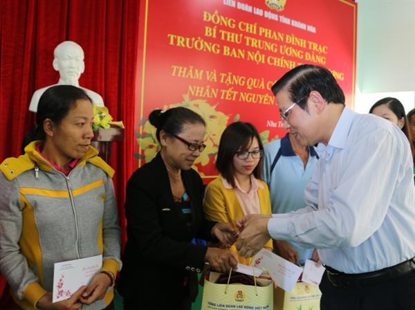 Cùng ngày, đồng chí Phan Đình Trạc đã đến thăm và trao quà tết cho gia đình đoàn viên Hà Thị Hồng Hạnh công nhân Công ty TNHH may mặc Đồ bơi Thống Nhất ở Khu Công nghiệp Suối Dầu (H. Cam Lâm, Khánh Hòa) có 3 người thân tử nạn do lở núi.