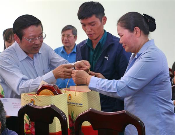 Đ/c Trần Thanh Hải - Phó Chủ tịch TT Tổng LĐLĐ Việt Nam tặng quà tết cho CNLĐ cụm Công nghiệp Diên Phú