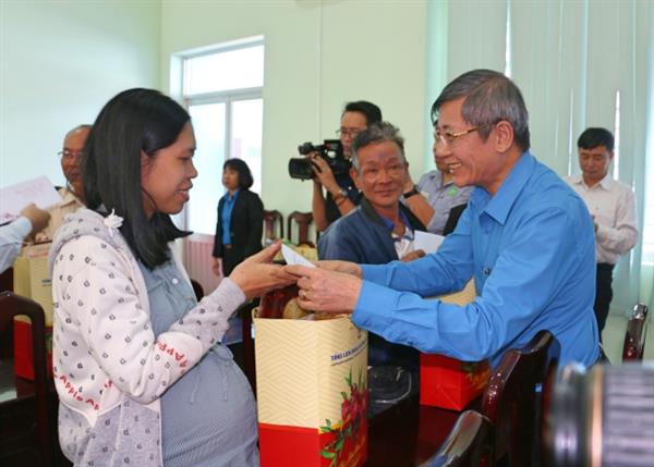 Đ/c Phan Đình Trạc - Trưởng ban Nội chính Trung ương tặng quà tết cho CNLĐ có hoàn cảnh khó khăn