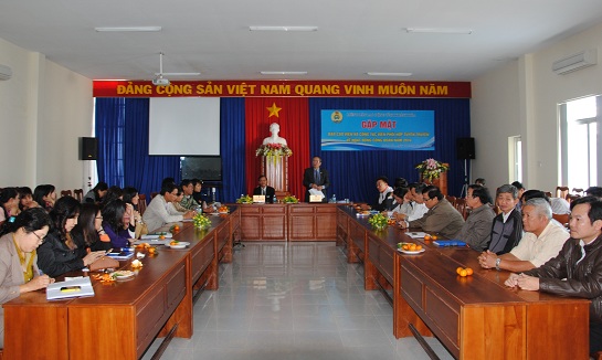 Ngày 16.1, LĐLĐ tỉnh tổ chức gặp mặt báo cáo viên và công tác viên phối hợp tuyên truyền về hoạt động công đoàn năm 2014 và triển khai nhiệm vụ công tác Tuyên giáo Công đoàn năm 2015. Các đồng chí: Nguyễn Hòa – UVBCH Tổng LĐLĐVN, Tỉnh ủy viên, Chủ tịch LĐLĐ tỉnh; Phạm Xuân Danh – Phó Chủ tịch LĐLĐ tỉnh đến dự.