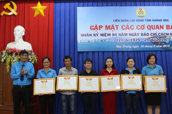 Nhân dịp này Liên đoàn Lao động tỉnh đã trao tặng bằng khen cho 8 tập thể và 7 cá nhân có thành tích đóng góp trong công tác tuyên truyền về phong trào CNVCLĐ và hoạt động của tổ chức Công đoàn Khánh Hòa.