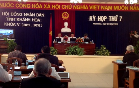 Sáng nay, ngày 10/12/2013, tại TP Nha Trang, HĐND tỉnh Khánh Hoà khai mạc kỳ họp thứ 7 (khoá V). Các đồng chí Lê Thanh Quang, Uỷ viên Trung ương Đảng, Bí thư Tỉnh uỷ, Chủ tịch HĐND tỉnh; Trần An Khánh, Uỷ viên Ban Thường vụ, Phó Chủ tịch, Mai Hữu Thu, Uỷ viên Thường trực HĐND tỉnh chủ trì kỳ họp.