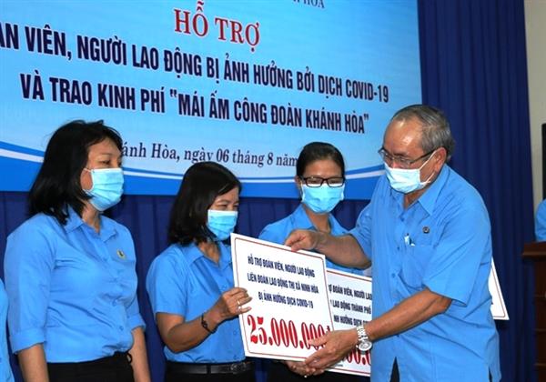 Nhằm chia sẻ khó khăn với đoàn viên, người lao động (ĐV, NLĐ) bị ảnh hưởng do dịch bệnh Covid - 19, chiều 6/8/2020, LĐLĐ tỉnh Khánh Hòa tổ chức trao hỗ trợ đoàn viên, công nhân lao động (CNLĐ).
