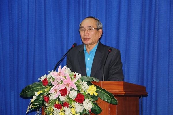 Đ/c Nguyễn Hòa - Chủ tịch LĐLĐ tỉnh báo cáo tại Hội nghị