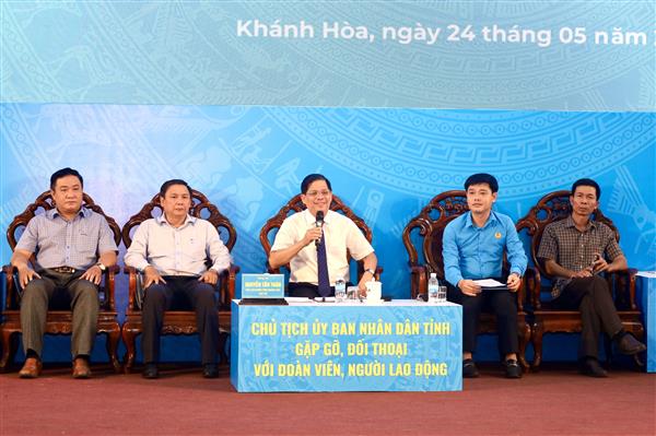 Chiều 24/5/2023, tại Nhà Văn hóa lao động tỉnh đã diễn Hội nghị gặp gỡ, đối thoại giữa Chủ tịch Ủy ban nhân dân tỉnh với đoàn viên, người lao động tỉnh Khánh Hòa. Tham dự có các đồng chí Nguyễn Tấn Tuân - Phó Bí thư Tỉnh ủy, Chủ tịch Ủy ban nhân dân tỉnh; Bùi Hoài Nam - Chủ tịch LĐLĐ tỉnh, lãnh đạo các sở, ngành của tỉnh cùng 100 đoàn viên, người lao động.