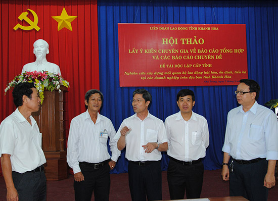 Ngày 7-8, Liên đoàn Lao động tỉnh đã tổ chức Hội thảo lấy ý kiến đóng góp của chuyên gia về báo cáo tổng hợp kết quả Đề tài “Nghiên cứu xây dựng mối quan hệ lao động hài hòa, ổn định, tiến bộ tại doanh nghiệp trên địa bàn tỉnh Khánh Hòa”. Đây là Đề tài Khoa học xã hội – nhân văn cấp tỉnh do LĐLĐ tỉnh trủ trì.