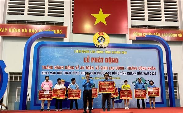 Sau 05 ngày thi đấu sôi nổi, chiều 28/4/2023, Liên đoàn Lao động tỉnh tổ chức Lễ bế mạc và trao giải Hội thao CNVCLĐ tỉnh Khánh Hòa năm 2023.