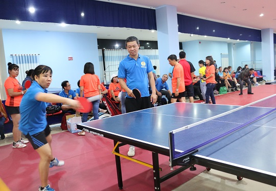 Trong trận chung kết đôi nam nữ Bóng bàn, vận động viên Trương Thị Thu -