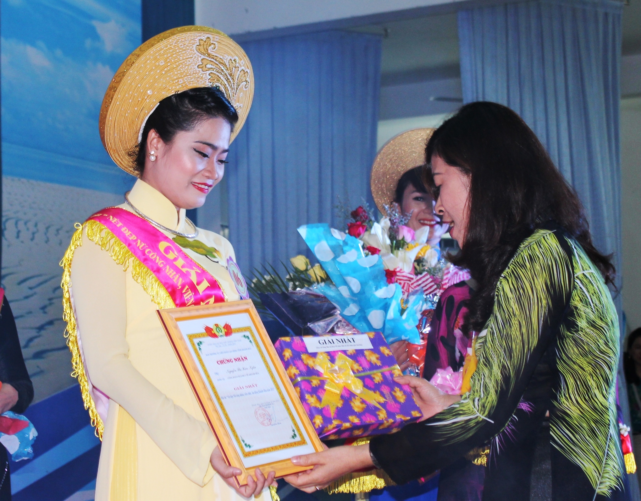 Kết thúc hội thi, thí sinh Nguyễn Thị Kim Ngân đại diện Công đoàn ngành Y tế đạt giải nhất; thí sinh Nguyễn Thị Tâm Chung – Công đoàn Viên chức tỉnh và Phan Thị Huệ - Công đoàn Giáo dục tỉnh đạt giải nhì; các thí sinh: Hoàng Kim Quỳnh – CĐ ngành NN-PTNT tỉnh, Hoàng Thị Thanh Trâm – CĐ Tổng công ty Khánh Việt và Bùi Thị Vân Nhi – CĐ thị xã Ninh Hòa đạt giải ba. Bên cạnh đó, ban tổ chức trao 4 giải khuyến khích, 6 giải phong trào và 5 giải ấn tượng về các nội dung thi cho các thí sinh.