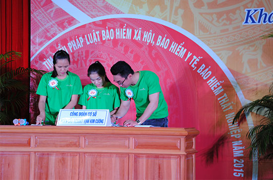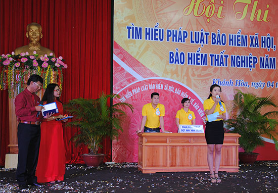 Ngày 4-12, Liên đoàn Lao động tỉnh và Bảo hiểm xã hội tỉnh Khánh Hòa đã tổ chức Hội thi “Tìm hiểu chính sách bảo hiểm xã hội, bảo hiểm y tế, bảo hiểm thất nghiệp” năm 2015. Tham gia hội thi có 10 đơn vị (LĐLĐ phố Nha Trang, CĐ ngành Y tế Khánh Hòa, CĐ các Khu Công nghiệp và Khu Kinh tế Khánh Hòa, CĐ ngành Giáo dục và Đào tạo Khánh Hòa, CĐ ngành Công Thương Khánh Hòa, CĐ Văn hóa Thể thao và Du lịch Khánh Hòa, CĐCS Công ty TNHH Nhà nước MTV Yến Sào Khánh Hòa, CĐCS Công ty cổ phần Dệt may Nha Trang, CĐCS Công ty TNHH Hoàn cầu Resort Vịnh Kim Cương, CĐCS Công ty cổ phần Điện lực Khánh Hòa).