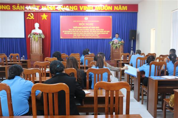 Đ/c Nguyễn Đức Trí - Phó Chủ tịch LĐLĐ tỉnh báo cáo chuyên đề năm 2023