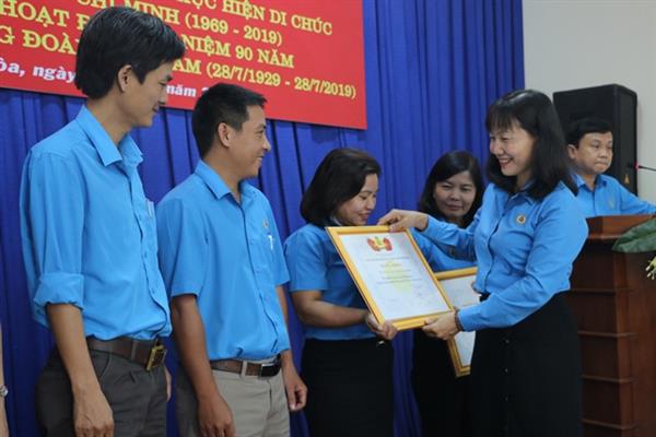 Đ/c Nguyễn Hòa - Chủ tịch LĐLĐ tỉnh tặng bằng khen cho các tập thể xuất sắc