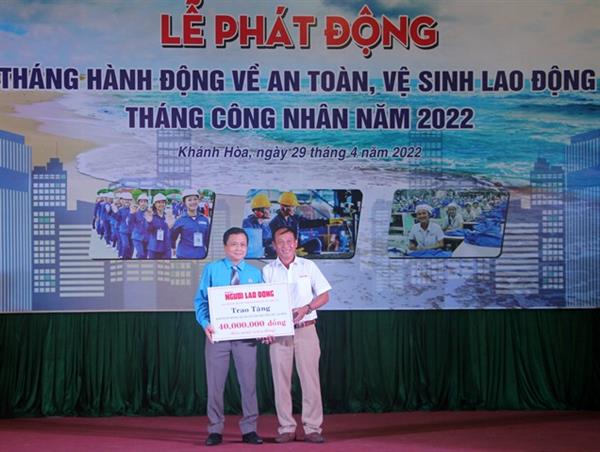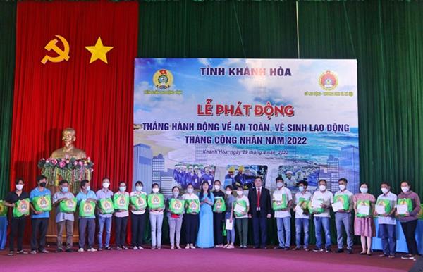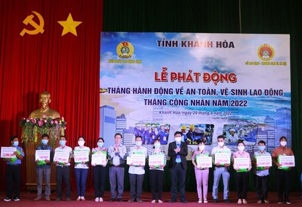 Tại Lễ phát động, LĐLĐ tỉnh trao 525 triệu đồng hỗ trợ kinh phí xây dựng nhà Mái ấm CĐ Khánh Hòa cho 12 đoàn viên có hoàn cảnh khó khăn về nhà ở, trao quà hỗ trợ cho 07 trường hợp đoàn viên, NLĐ bị tai nạn lao động với tổng số tiền 7 triệu đồng, đồng thời trao 160 suất quà (500.000đ/suất) cho đoàn viên, NLĐ có hoàn cảnh khó khăn, bị ảnh hưởng dịch bệnh Covid-19. Báo Người Lao Động trao 20 suất học bổng cho con CNVCLĐ người đồng bào dân tộc thiểu số trị giá 40 triệu đồng.