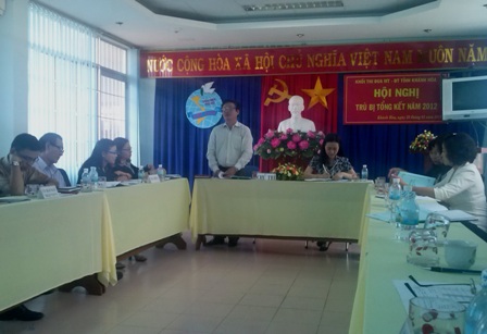 Sáng 29.01, Khối Mặt trận- Đoàn thể tỉnh Khánh Hòa tổ chức Hội nghị trù bị tổng kết năm 2012. Trong năm, 7 đơn vị thuộc khối Mặt trận- Đoàn thể đã tổ chức nhiều hoạt động thiết thực, hiệu quả như: dã ngoại, tặng quà cho 10 gia đình chính sách tại Khu Du lịch Dốc Lết (Ninh Hòa) nhân dịp Kỷ niệm ngày sinh nhật Chủ tịch Hồ Chí Minh 19/5; tổ chức hội thao truyền thống khối thi đua Mặt trận- Đoàn thể nhân dịp chào mừng ngày Quốc khánh 2/9. Ngoài các hoạt động phong trào tích cực sôi nổi, các đơn vị thành viên trong khối cũng đã hoàn thành xuất sắc nhiệm vụ chính trị và chuyên môn, Hội nghị đã bình chọn Tỉnh Đoàn Khánh Hòa dẫn đầu, Liên đoàn Lao động và Hội Liên hiệp Phụ nữ VN tỉnh xếp thứ nhì, Hội Nông dân tỉnh Khánh Hòa xếp thứ ba.