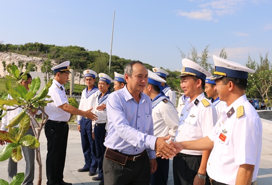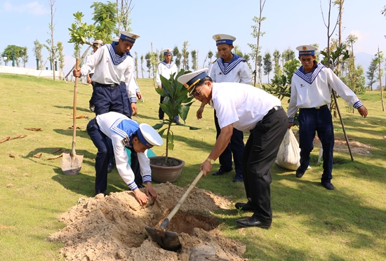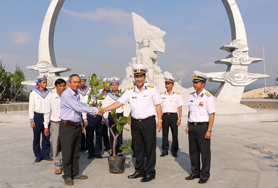 Cùng với cán bộ, chiến sĩ Đoàn Trường Sa trồng cây lưu niệm