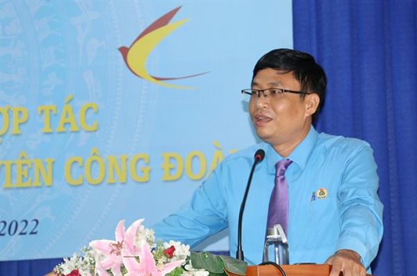 Đ/c Bùi Thanh Bình - Chủ tịch LĐLĐ tỉnh phát biểu tại Hội nghị