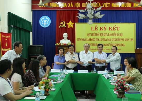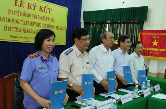Chiều ngày 25-10, 5 đơn vị gồm: Liên đoàn Lao động tỉnh, Bảo hiểm xã hội tỉnh; Tòa án nhân dân tỉnh; Cục thi hành án dân sự tỉnh; Viện kiểm sát nhân dân thực hiện ký kết quy chế phối hợp về việc khởi kiện, giải quyết các vụ án dân sự trong tranh chấp lao động cá nhân, tập thể.