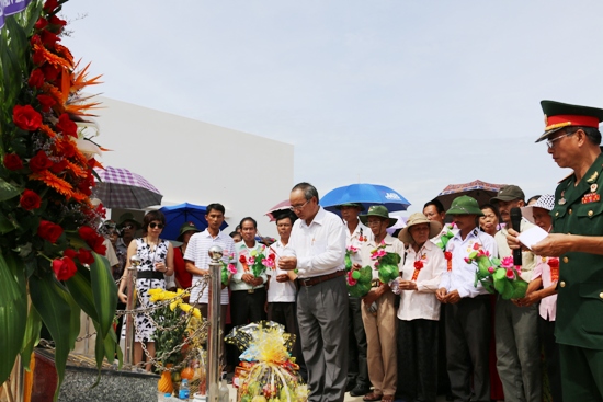 Tại buổi viếng, đồng chí Nguyễn Hòa – UVBCH Tổng LĐ LĐVN, Tỉnh ủy viên, Chủ tịch LĐLĐ tỉnh cùng với thân nhân liệt sĩ và các gia đình chính sách đã dâng hương tại Khu tưởng niệm Chiến sĩ Gạc Ma.