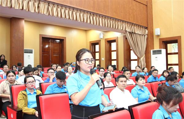 Đoàn viên, người lao động nêu kiến nghị tại hội nghị.
