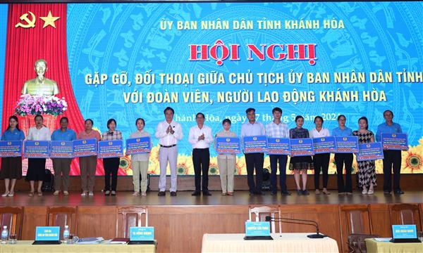 Chiều 27-5, ông Nguyễn Tấn Tuân - Phó Bí thư Tỉnh ủy, Chủ tịch UBND tỉnh Khánh Hòa chủ trì hội nghị gặp gỡ, đối thoại giữa lãnh đạo tỉnh với đoàn viên, người lao động (NLĐ) năm 2024. Dự hội nghị có ông Nguyễn Khắc Toàn - Phó Bí thư Thường trực Tỉnh ủy, Chủ tịch HĐND tỉnh. Tại hội nghị, đoàn viên, NLĐ đã nêu nhiều vấn đề liên quan đến chế độ, chính sách, phúc lợi..., qua đó được Chủ tịch UBND tỉnh, lãnh đạo các sở, ngành giải đáp, định hướng giải quyết trong thời gian tới.