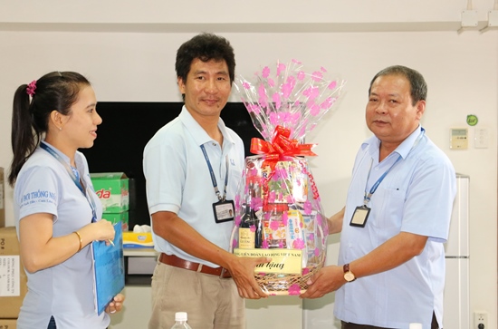 Đồng chí Trần Văn Lý (bên phải) tặng quà cho Ban chấp hành Công đoàn