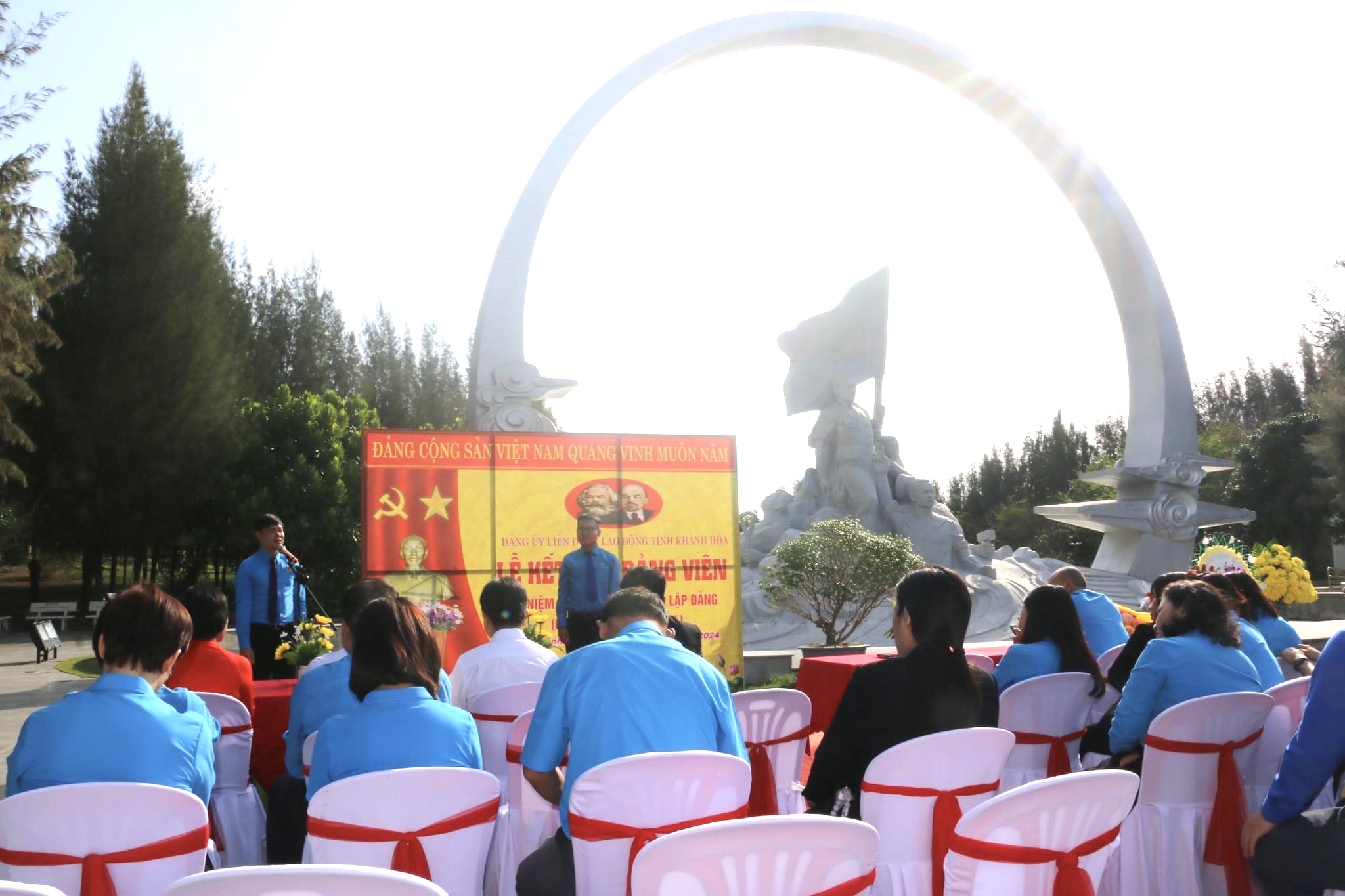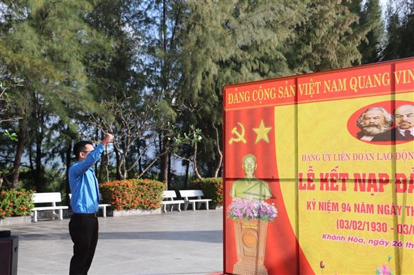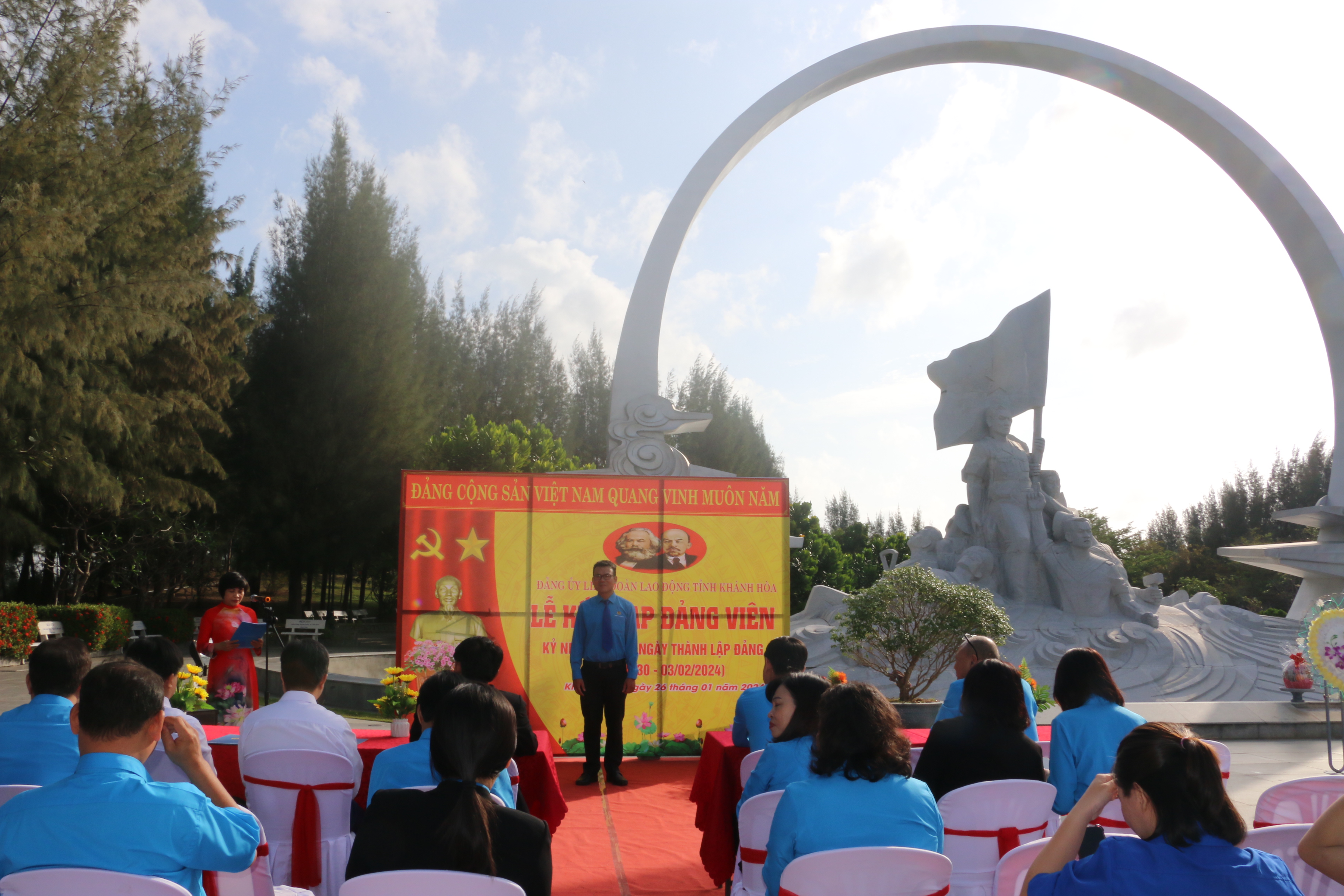 Nhân kỷ niệm 94 năm Ngày thành lập Đảng Cộng sản Việt Nam, sáng 26/1 tại Khu tưởng niệm chiến sĩ Gạc Ma – xã Cam Hải Đông (Cam Lâm), Đảng ủy Liên đoàn Lao động (LĐLĐ) tỉnh tổ chức Lễ kết nạp Đảng năm 2024 cho đảng viên mới. Tham dự Lễ có các đồng chí: Trịnh Văn Mơ, Phó Bí thư Đảng ủy Khối các cơ quan tỉnh; Bùi Hoài Nam - Bí thư Đảng ủy LĐLĐ tỉnh, Chủ tịch LĐLĐ tỉnh, cùng các đảng viên, chi bộ trực thuộc Đảng bộ LĐLĐ tỉnh.