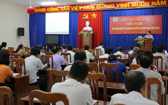 Ngày 9-6, Liên đoàn Lao động tỉnh Khánh Hòa tổ chức tập huấn nghiệp vụ công tác kiểm tra công đoàn cho trên 70 đồng chí là Ủy viên UBKT Liên đoàn Lao động tỉnh khóa IX, Chủ nhiệm, Phó Chủ nhiệm UBKT LĐLĐ cấp huyện, Công đoàn ngành địa phương, Công đoàn các Khu công nghiệp – Khu kinh tế tỉnh, các công đoàn cơ sở trực thuộc.