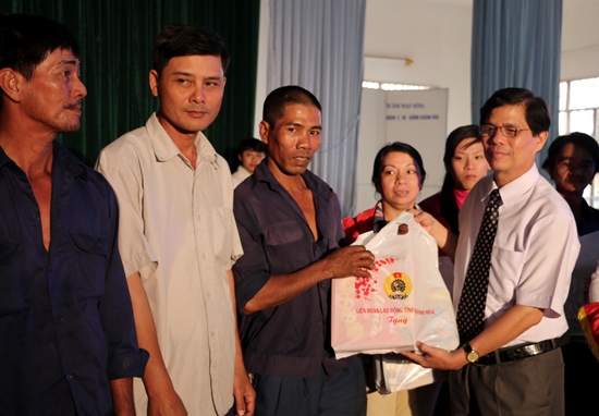 Tại chương trình “Tết sum vầy 2017”, LĐLĐ tỉnh đã trao 200 suất quà cho công nhân nghèo có hoàn cảnh khó khăn (mỗi suất quà gồm 500.000 đồng và kèm theo  hiện vật trị giá  200.000 đồng do LĐLĐ TP. Nha Trang hỗ trợ)