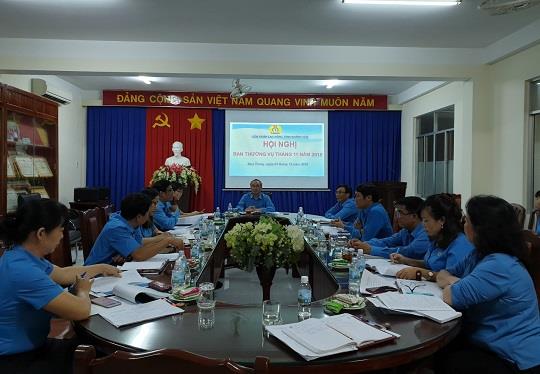 Ngày 03/12/2018, Ban Thường vụ LĐLĐ tỉnh tổ chức hội nghị thường kỳ dưới sự chủ trì của đồng chí Nguyễn Hòa - Ủy viên BCH Tổng Liên đoàn Lao động Việt Nam, Tỉnh ủy viên, Chủ tịch LĐLĐ tỉnh. Cùng dự có các đồng chí Phó Chủ tịch Nguyễn Thị Hằng, Bùi Thanh Bình và lãnh đạo các Ban Chuyên đề, Nhà Văn hóa Lao động tỉnh.