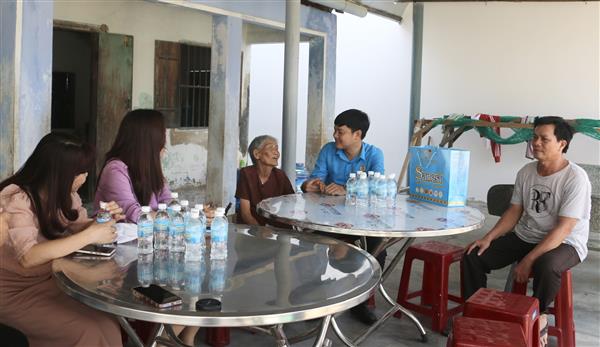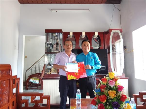 Đồng chí Nguyễn Đức Trí , Phó Chủ tịch LĐLĐ tỉnh thăm, tặng quà đoàn viên là con liệt sĩ tại huyện Diên Khánh.
