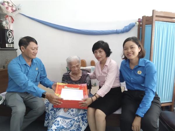 Lãnh đạo Liên đoàn Lao động tỉnh thăm hỏi sức khỏe các mẹ Việt Nam anh hùng.