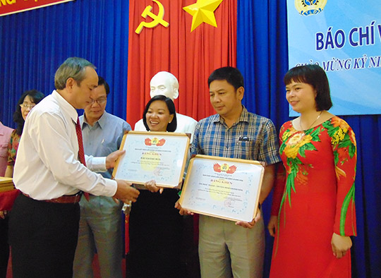 Chủ tịch LĐLĐ tỉnh Nguyễn Hòa trao tặng bằng khen cho các cơ quan báo chí