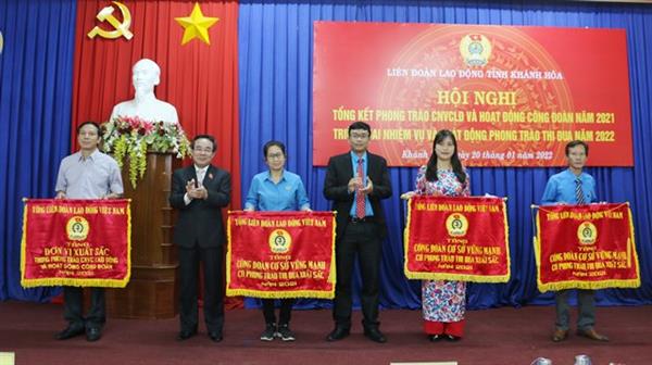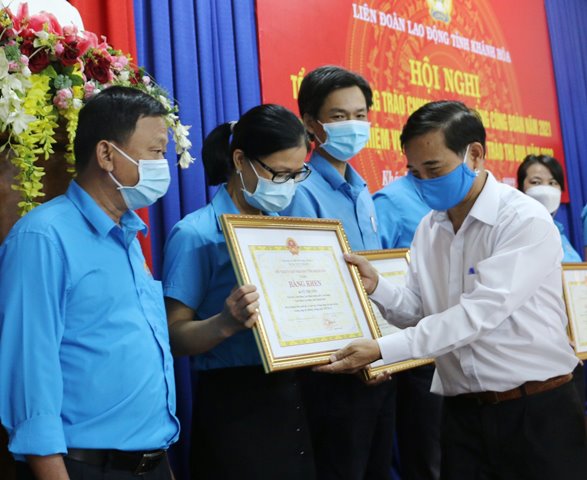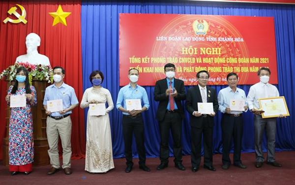 Tại Hội nghị, Tổng Liên đoàn Lao động Việt Nam tặng cờ thi đua xuất sắc cho 4 tập thể; tặng bằng khen cho 14 tập thể và 36 cá nhân; tặng bằng lao động sáng tạo cho 7 tập thể và 1 cá nhân. UBND tỉnh Khánh Hòa tặng bằng khen cho 17 tập thể và 11 cá nhân trong công tác phòng chống dịch Covid-19. Liên đoàn Lao động tỉnh tặng cờ thi đua xuất sắc cho 23 tập thể; tặng bằng khen cho 13 tập thể; tặng bằng khen Phong trào “công nhân, viên chức, lao động vượt khó, sáng tạo, quyết tâm chiến thắng đại dịch Covid-19” cho 1 tập thể, 1 cá nhân.