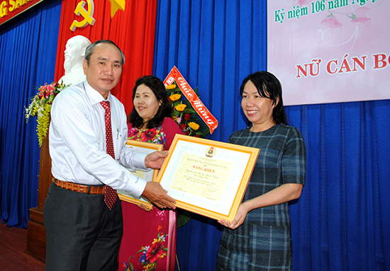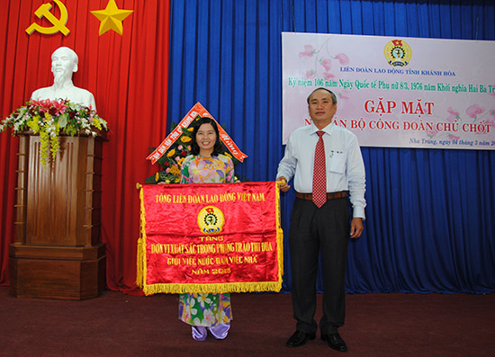 Nhận dịp này, Chủ tịch LĐLĐ tỉnh Nguyễn Hoà đã trao cờ thi đua và bằng khen của Tổng Liên đoàn Lao động Việt Nam cho LĐLĐ thị xã Ninh Hoà; CĐ Giáo dục huyện Diên Khánh, CĐCS Nhà máy thuốc lá Khatoco đã có thành tích xuất sắc trong phong trào “Giỏi việc nước, đảm việc nhà” năm 2015.