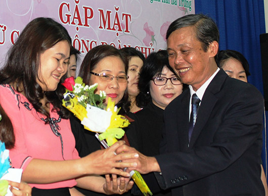 Phó Chủ tịch LĐLĐ tỉnh Phạm Xuân Danh tặng hoa cho nữ cán bộ CĐ chủ chốt