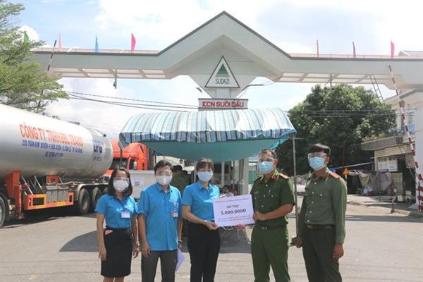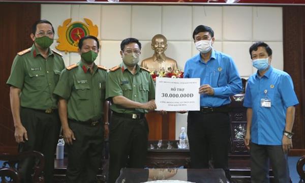 Nhằm động viên, chia sẻ cùng lực lượng Công an nhân dân ngày đêm chống dịch, trong 2 ngày (30-31/8/2021), lãnh đạo Liên đoàn Lao động tỉnh đã đến thăm, động viên và hỗ trợ 35 triệu đồng cho Cán bộ chiến sĩ Công đoàn Công an nhân dân tỉnh và đồn Công an Khu Công nghiệp Suối Dầu.