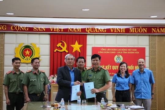 Ngày 23/11/2018, tại Nha Trang, Công đoàn Công an nhân dân và Liên đoàn Lao động tỉnh đã tổ chức ký kết Quy chế phối hợp hoạt động nhiệm kỳ 2018-2023. Đồng chí Nguyễn Hòa - Ủy viên Ban Chấp hành Tổng Liên đoàn Lao động Việt Nam, Tỉnh ủy viên, Chủ tịch Liên đoàn Lao động tỉnh và đồng chí Vũ Mạnh Hà - Ủy viên Ban Chấp hành Tổng Liên đoàn Lao động Việt Nam, Chủ tịch Công đoàn CAND chủ trì hội nghị.
