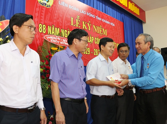 Ngày 28-7, Liên đoàn lao động tỉnh Khánh Hòa tổ chức lễ kỷ niệm 88 năm ngày thành lập Công đoàn Việt Nam (28-7-1929 – 28-7-2017). Đồng chí Phan Thông, Phó chủ tịch HĐND tỉnh cùng lãnh đạo các sở, ban, ngành đến dự.