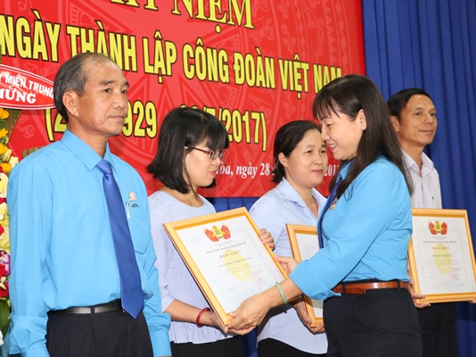 Nhân dịp này, Tổng Liên đoàn Lao động Việt Nam tặng kỷ niệm chương “Vì sự nghiệp xây dựng tổ chức công đoàn” cho 28 cá nhân và tặng bằng lao động sáng tạo cho 8 cá nhân; Liên đoàn Lao động tỉnh khen thưởng 22 tập thể cá nhân tiêu biểu.