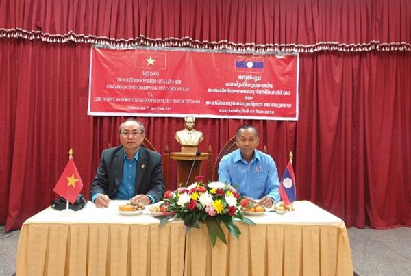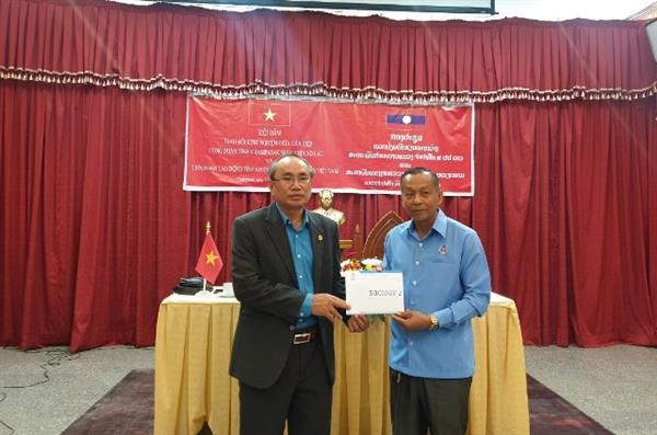 Đ/c Nguyễn Hòa - Chủ tịch LĐLĐ tỉnh Khánh Hòa và đ/c Khămsing Sithanongsack, Chủ tịch