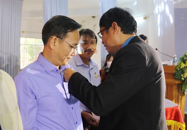 Đ/c Bùi Thanh Bình - Chủ tịch LĐLĐ tỉnh trao Kỷ niệm chương